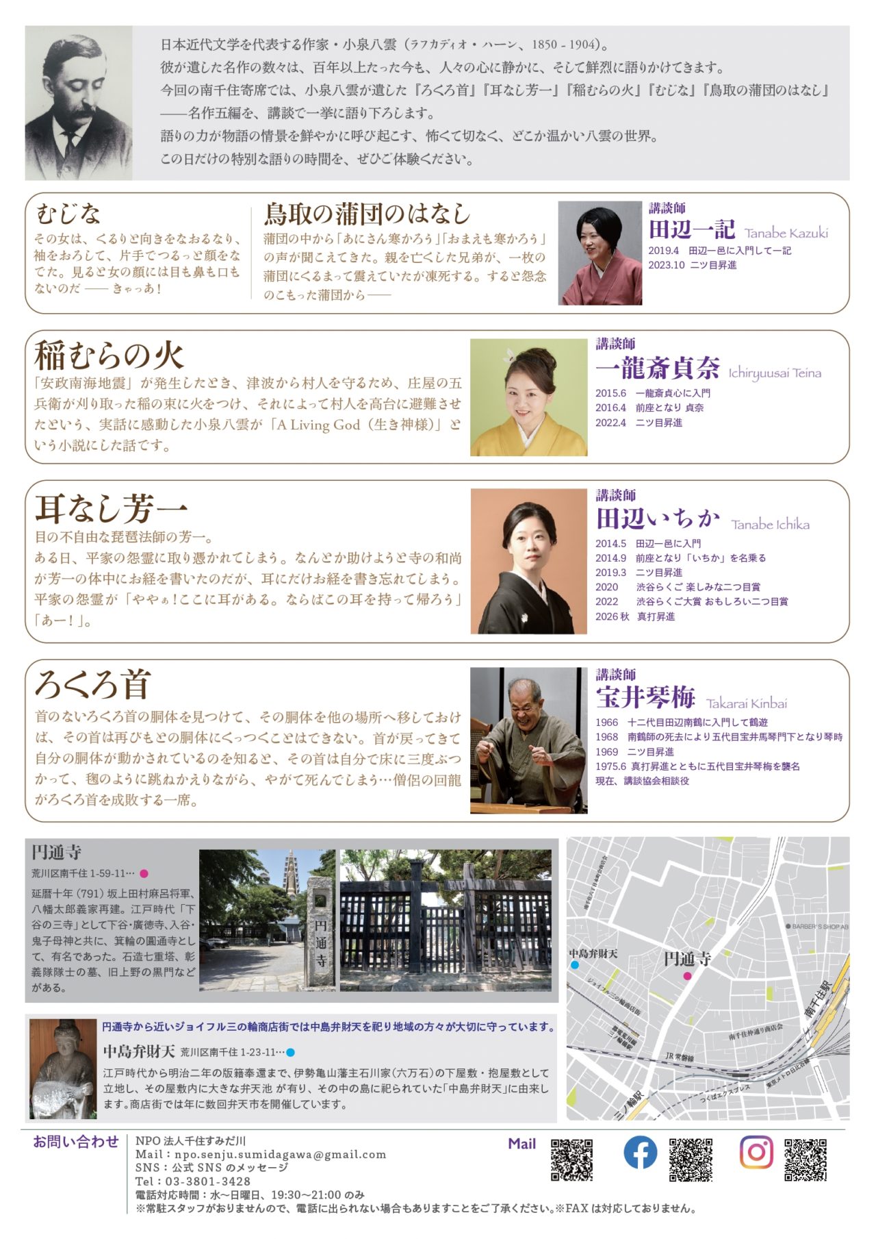 【完売御礼】南千住寄席@円通寺『怪談奇譚 小泉八雲』